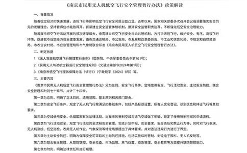 为规范民用无人机低空飞行活动,落实安全责任,促进低空经济有序发展,南京市出台《民用无人机低空飞行安全管理暂行办法》,自2026年2月1日起施行,有效期至202...